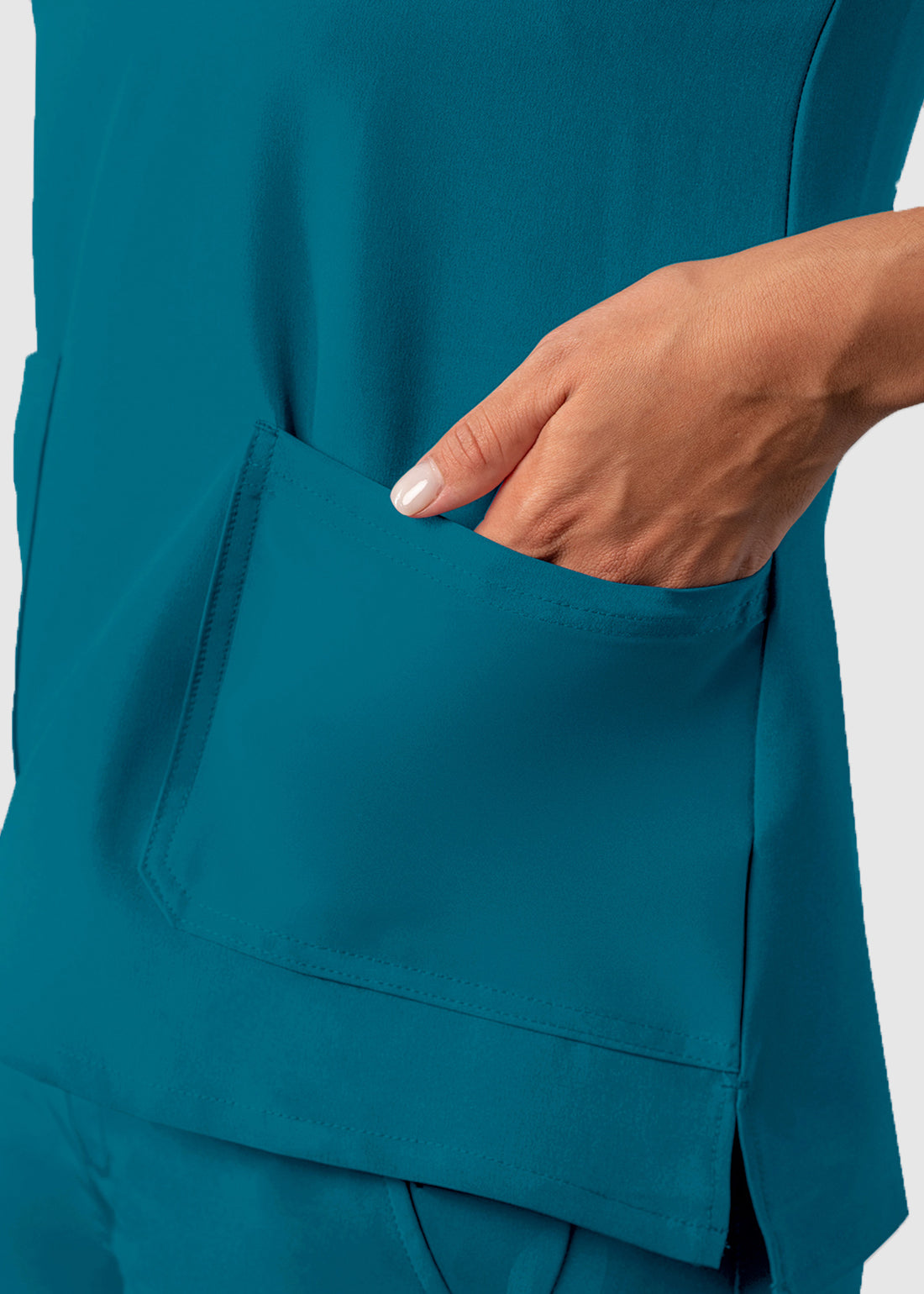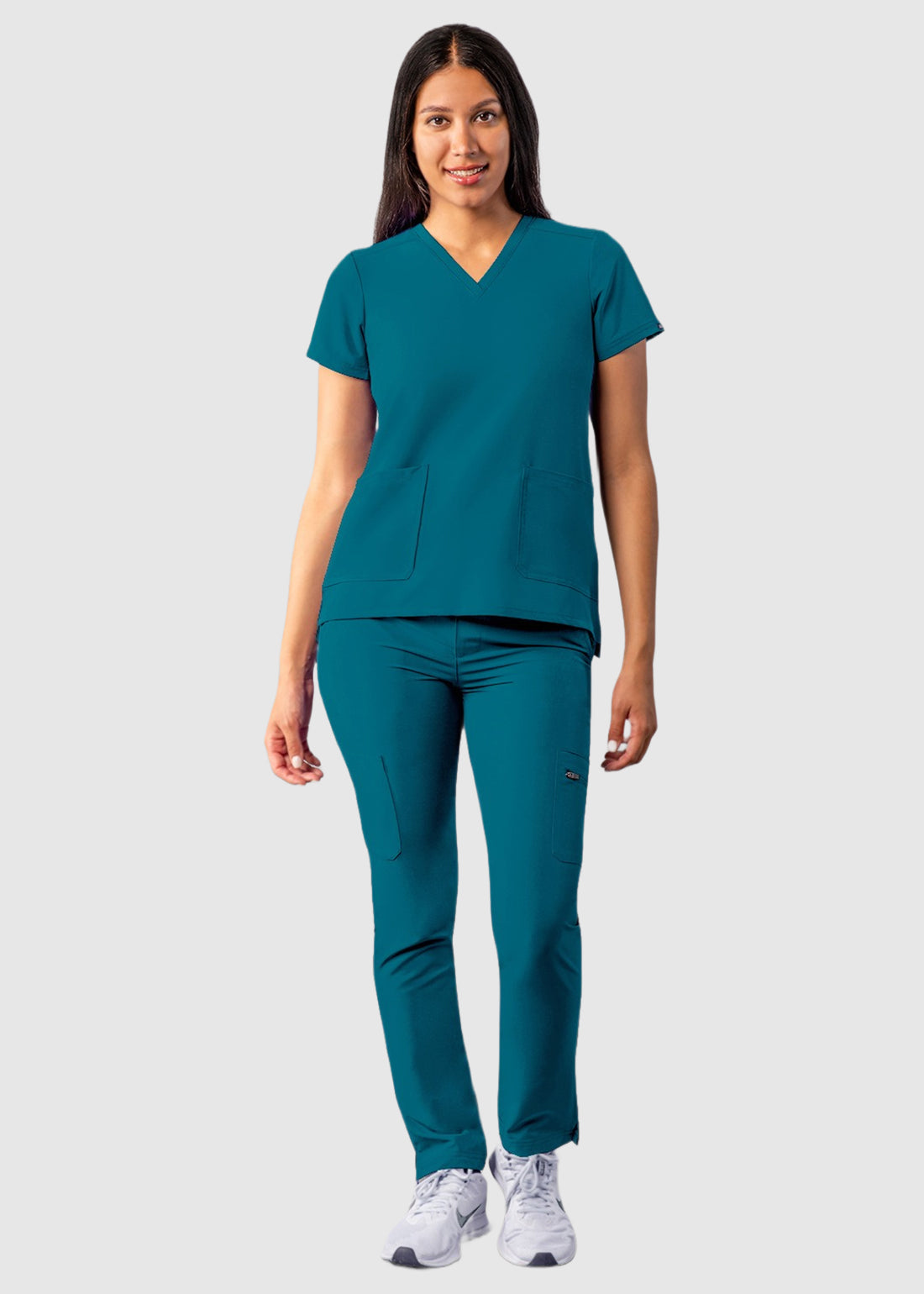 Dress professionally and feel great in Adar A6008 fit V-neck top features two front patch pockets, with extra tech storage internal pocket on the right, side vents for enhanced performance. Completed with back darts at that gives a flattering look and forward shoulder, back yoke and ADAR brand icon, the top is a must have.
