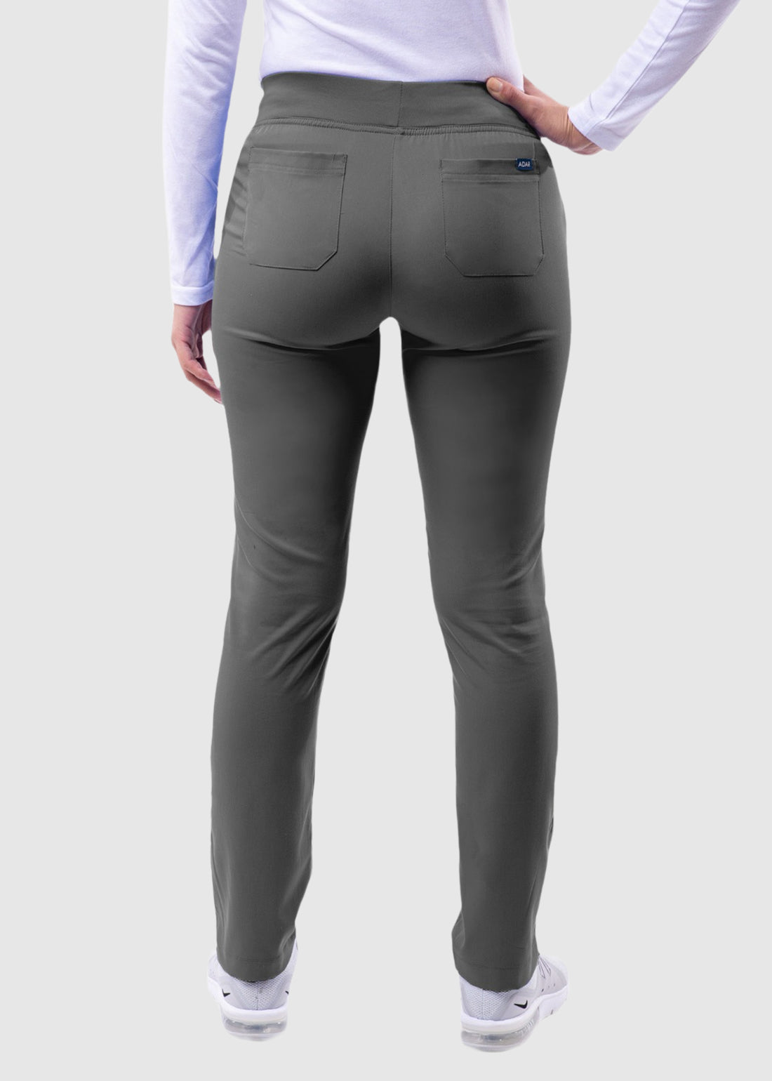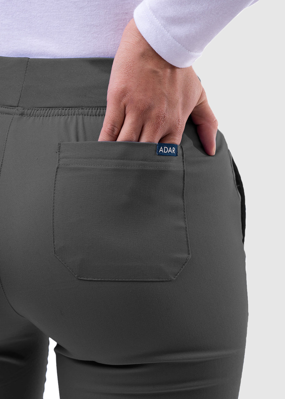 Be at ease all day long with this Pro by Adar Women's Elastic Waistband Skinny P7102P Scrub Petite Pant. The modern flexible pants comes with a flat stretch yoga style pull-on waistband for comfort, while two front slip pockets with 2 interior tech pockets makes storage of essential easier than ever. Special features of this collection includes fluid resistant, stretch fabric super soft body, wrinkle resistant, and odor resistant.