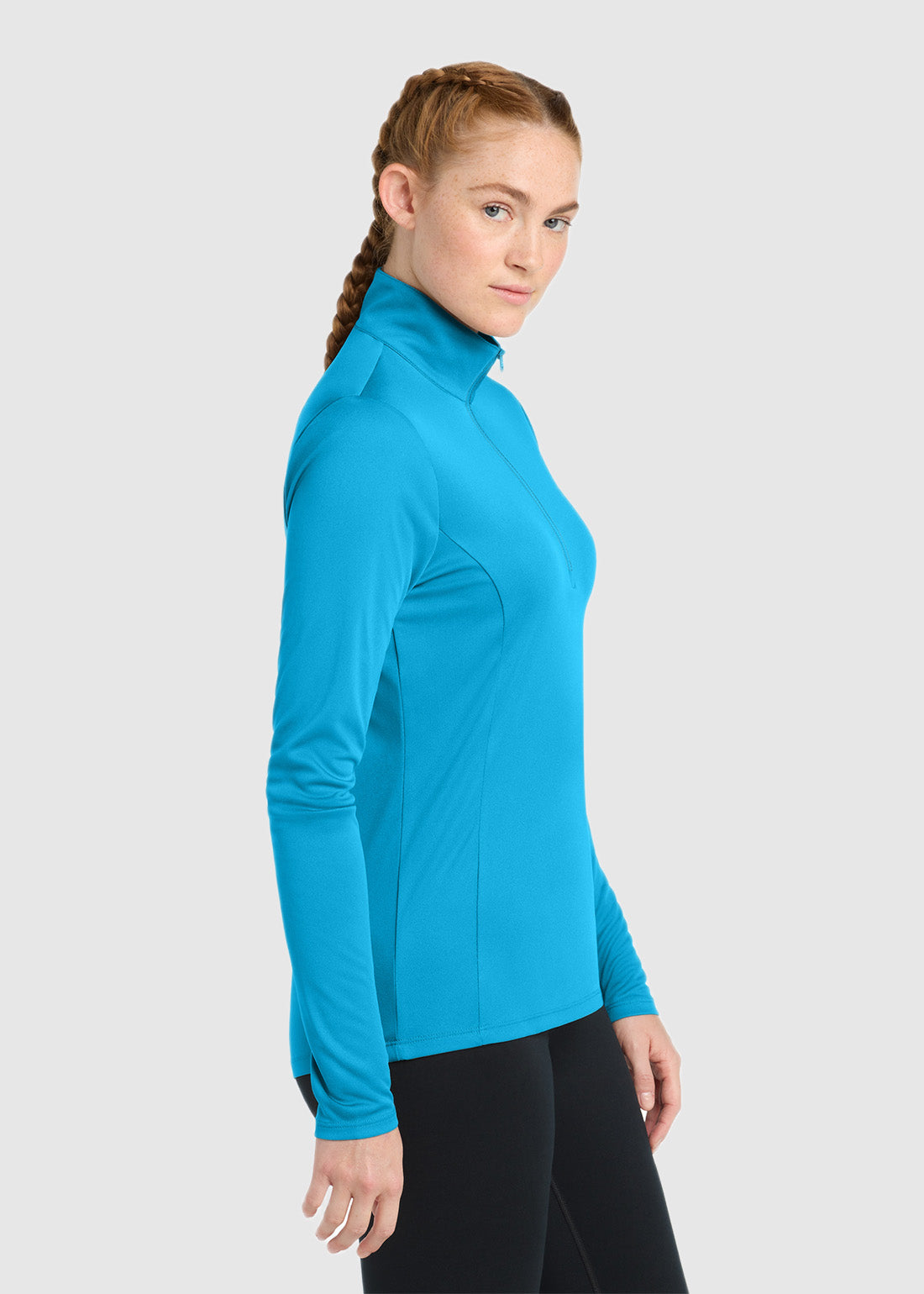 Look trendy and feel great in Sport-Tek Ladies PosiCharge Competitor Quarter -Zip Pullover. With a removable tag for comfort and relabeling, cadet collar, reverse coil zipper, princess seams, set-in sleeves, open cuffs and hem and drop tail hem, the pullover will give you a stylish look without compromising in your style quotient.