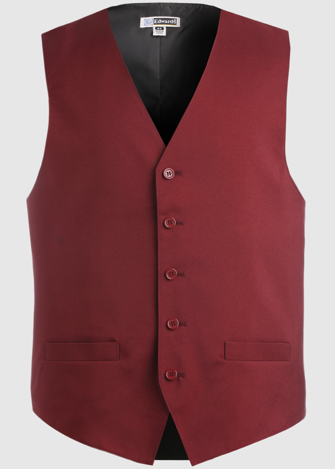 Dress comfortably with Essential Polyester Vest. Perfect for banquets; restaurants or casinos, the V-neck vest with matching button placket is all that you need. With two functional welt pockets, four inside lining pockets, self-fabric back and fully lined construction makes the vest functional and rewarding,