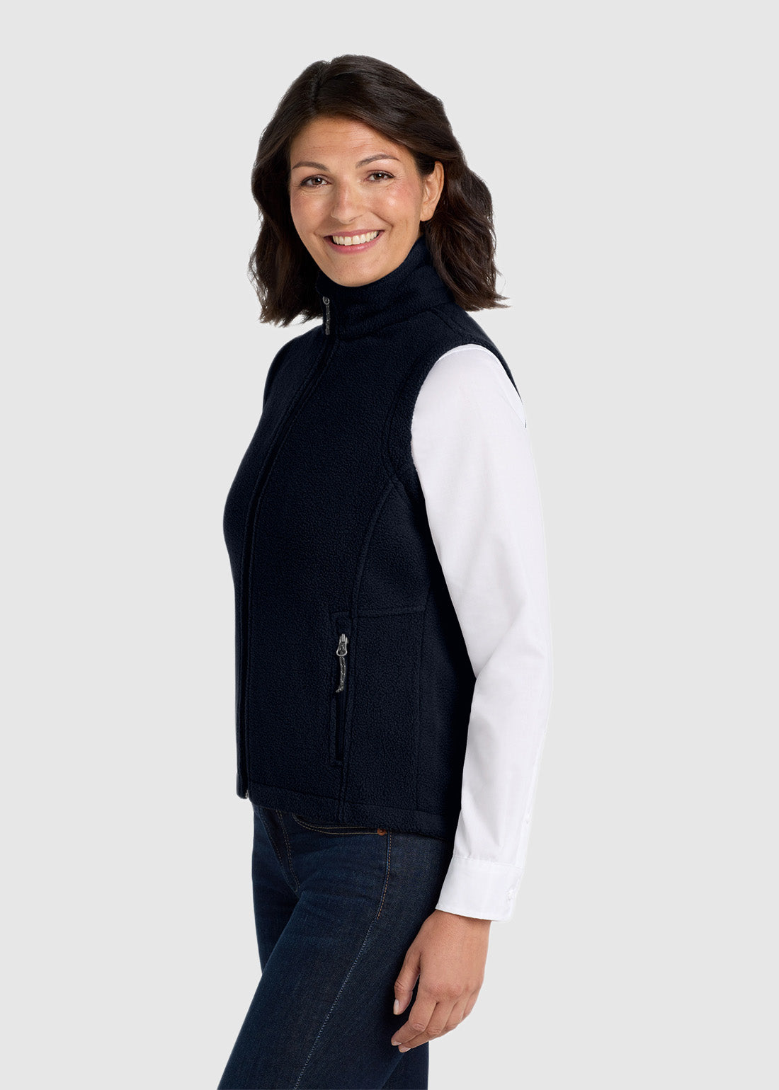 Look your best with Port Authority Ladies Value Fleece Vest. With a twilltaped neck, reverse coil zipper, chin guard and knotted zipper pulls, the vest is of premium value. With a tricotlined armholes, front zippered pockets and open hem with drawcord and toggle for adjustability, the vests are great value for money.