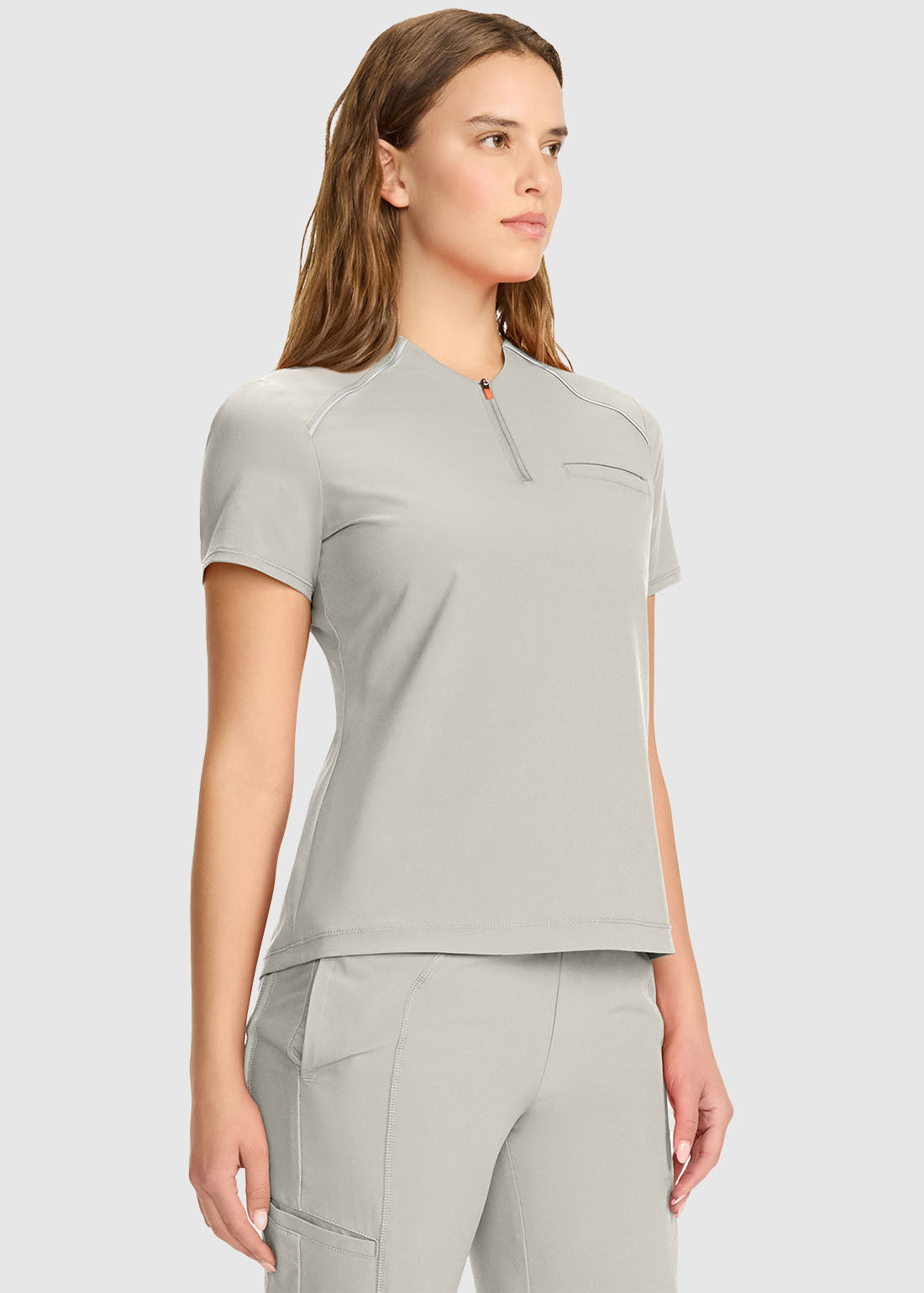 A tuckable top that elevates everyday looks, this ultra-stretch scrub is the perfect partner to your favorite performance pant. A Henley-style neckline and back contrast detail add fun-yet-functional appeal.