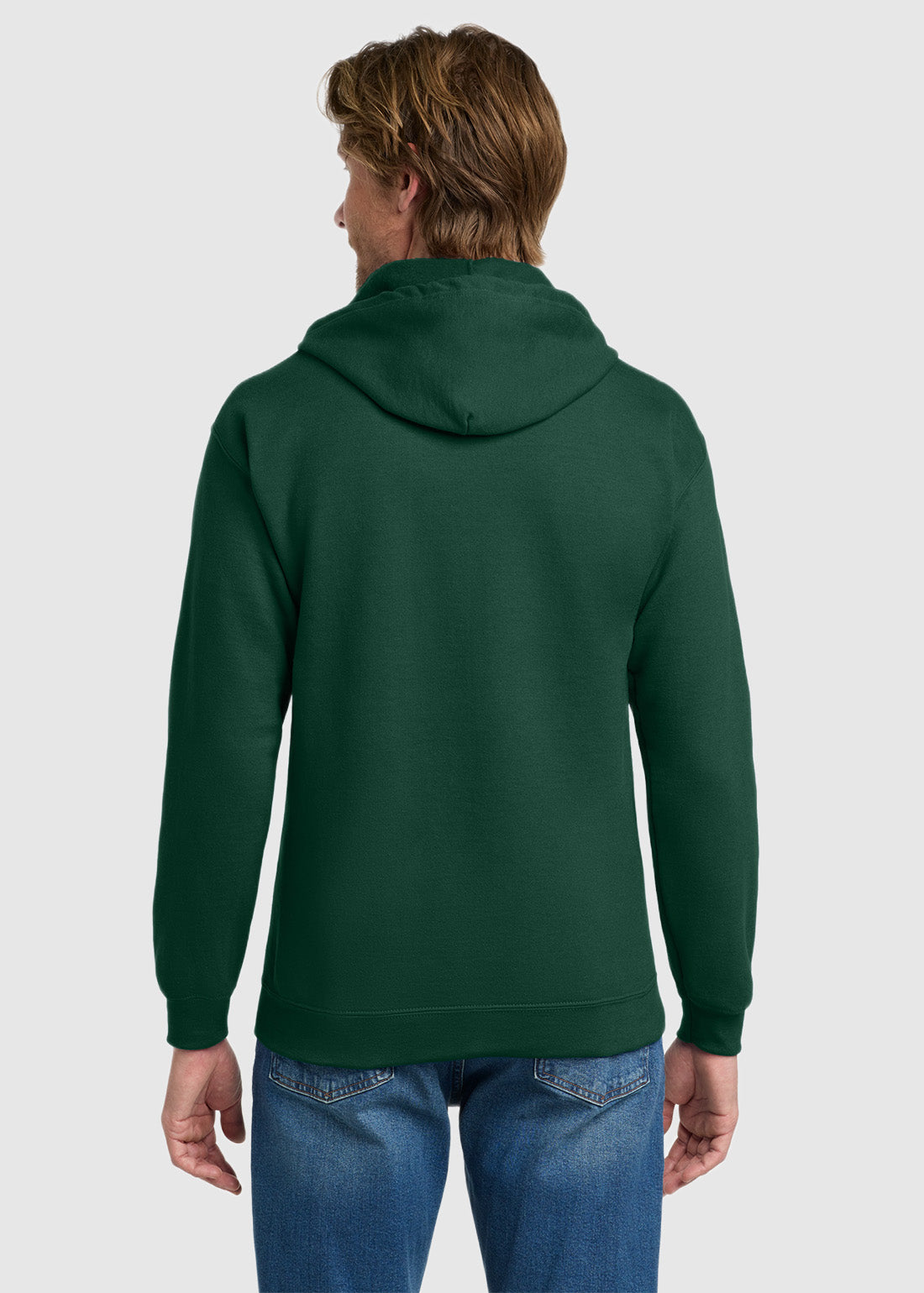 Be at ease with Gildan Heavy Blend Full-Zip Hooded Sweatshirt. The double-needle stitching at waistband and cuffs enhances durability, while the unlined hood with dyed-to-match drawcord looks stylish. With metal zipper, 1x1 rib knit cuffs and waistband with spandex and front pouch pockets makes this sweatshirt a must have.