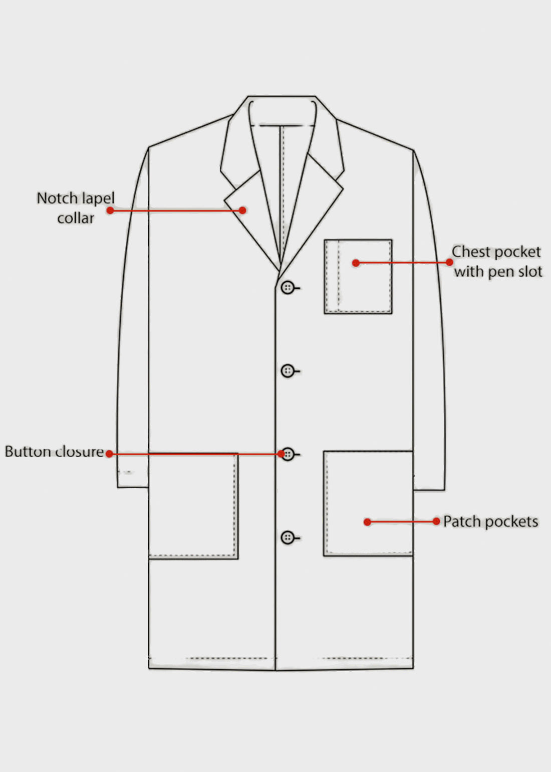 Make an impression, look professional and feel great in HeedFit 1101B unisex 40 inches long white lab coat with inner pocket. Meticulous crafted, the functional lab coat features an easy to wear four button closure. Completed with two spacious patch pockets and one chest pocket with pen slot and one inner pocket, the lab coat comes with vented back and side access for superior functionality on the go.