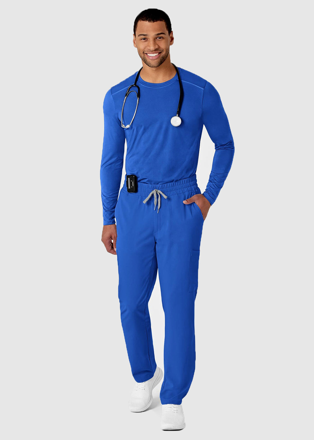 Be on top of your game with Layers by Wink Scrubs Men's Performance Long Sleeve T-Shirt. Featuring a crew neckline, long sleeves, center back neck reflective loop for headphone wires and flatlock accents, the t-shirt is easy breezy comfortable