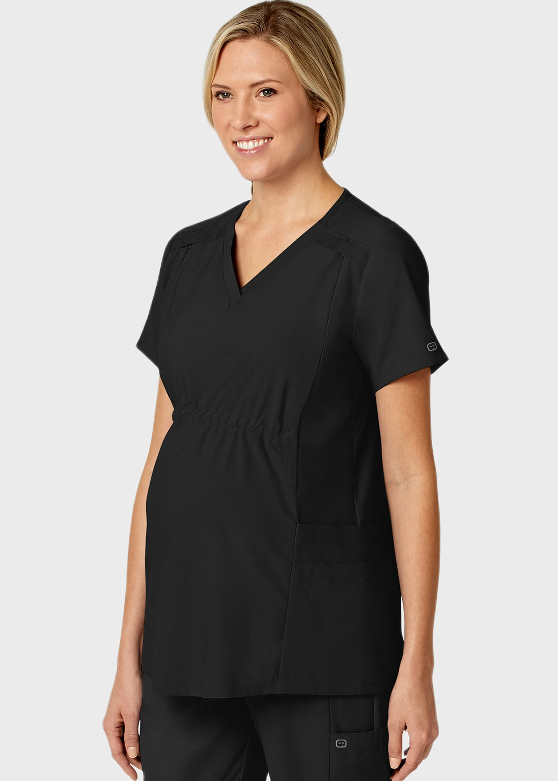 Embrace motherhood with comfort with W123 by Wink Scrubs Women's Maternity V-Neck Scrub Top. Equipped with a V-neckline, short sleeves, three top-loading front side pockets, one no-budge cell phone pocket, one pen slot, badge ID loops, accessory loop with silicone logo ring, tuck-away invisible zippers on front princess seams, adjustable empire center seam with interior comfort elastic pulls, you get quality, comfort and performance.