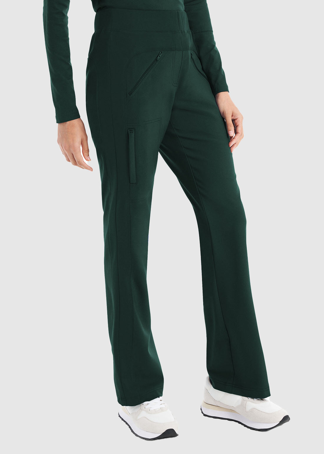 Comfort and functionality goes hand in hand with Whitecross Women's Bootcut Petite Scrub Pants. Featuring a stylish knit yoke and side panels you get comfort and mobility on the go. Equipped with two front zipper pockets, one vertical cell phone pocket, and two back pockets keep all your essentials in one place. Completed with a sleek, non-pinching knit elastic waistband with an adjustable internal drawstring, the pants will keep you at ease through the longest of shifts.