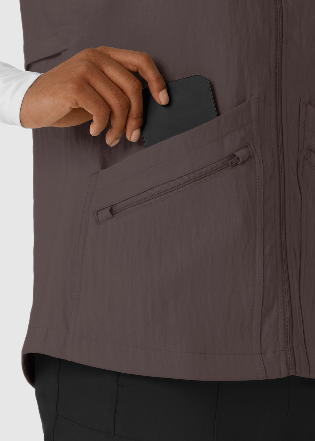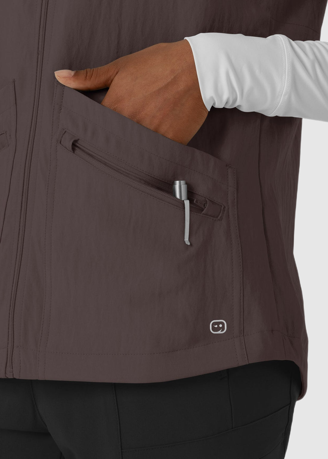 Wink Scrubs Women's Everything Everywhere Scrub Vest Designed for maximum functionality, this modern-fit scrub vest features an impressive seven pockets to keep your essentials organized. The curved high-low hem adds a stylish touch, making it the perfect layering piece for busy professionals.