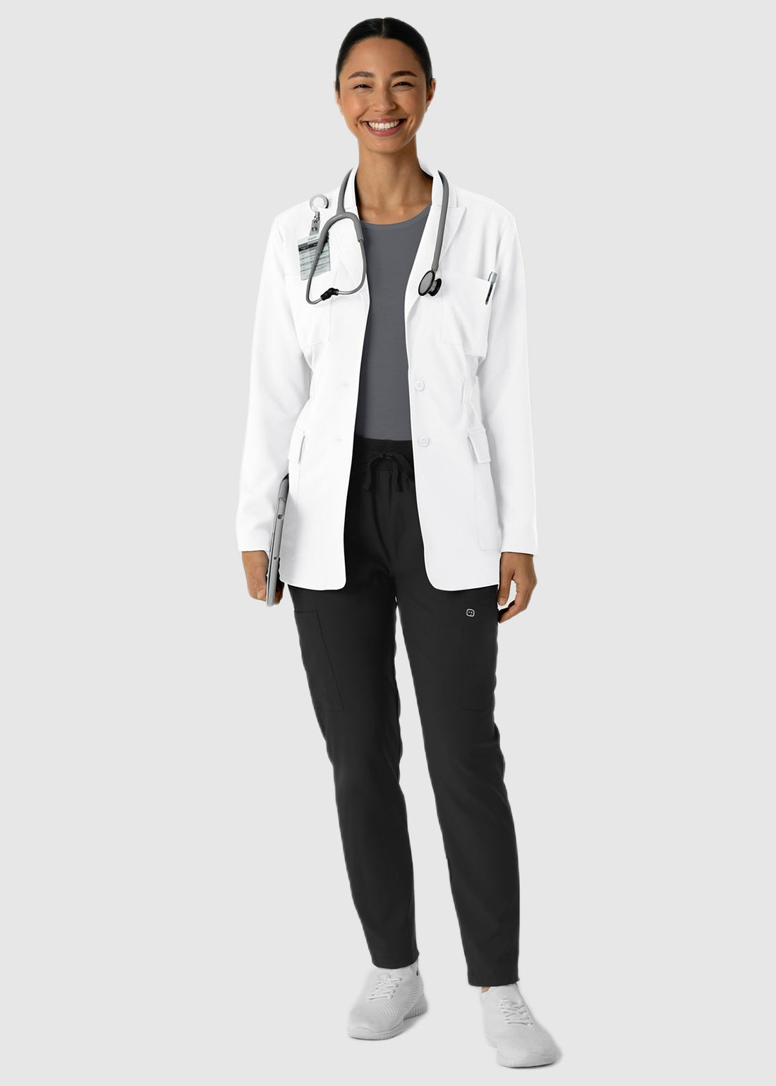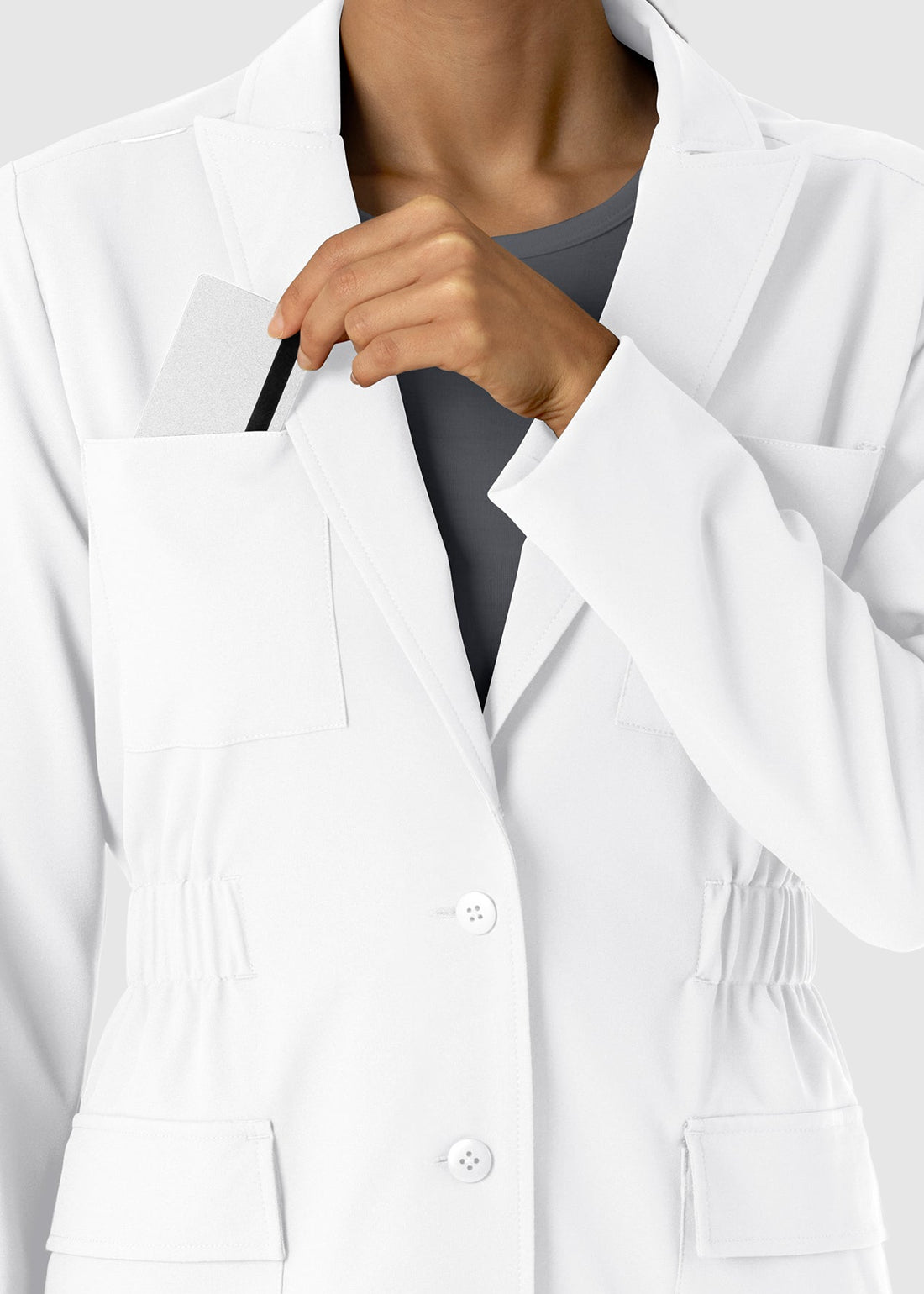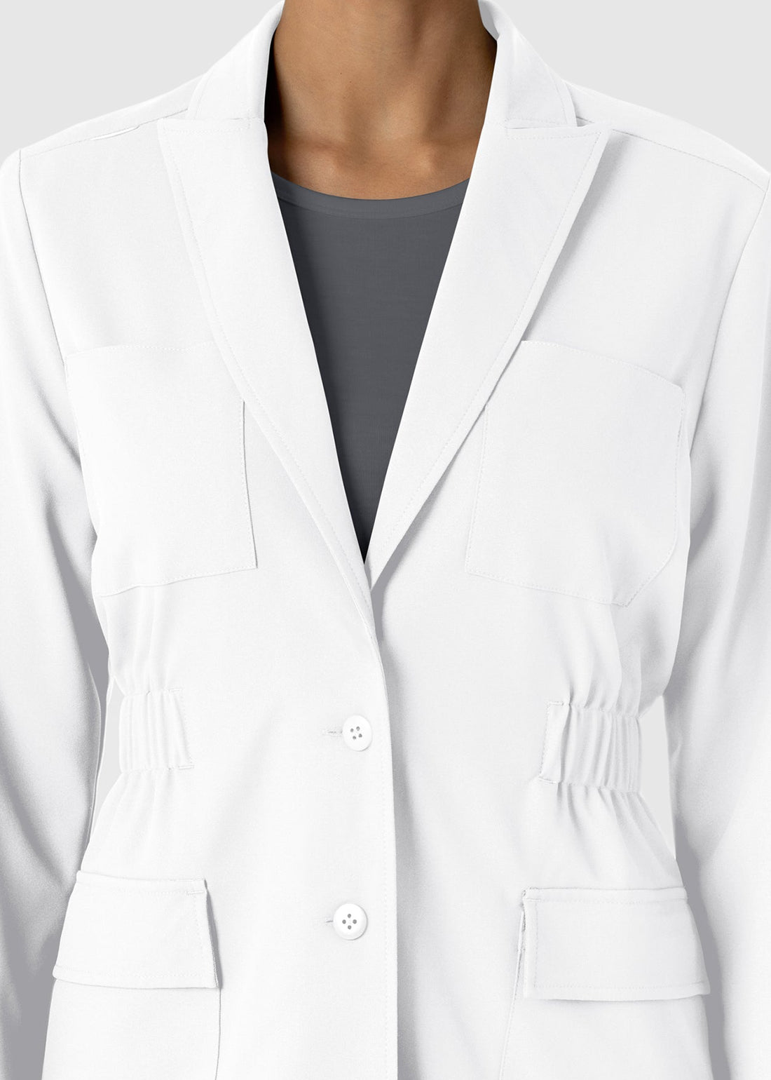 Wink Scrubs Women's Blazer Short Lab Coat Professional meets polished in this modern-fit lab coat, designed with a button closure and classic notched lapels. It features two chest pockets and two cargo pockets, offering both style and practical storage for your essentials.