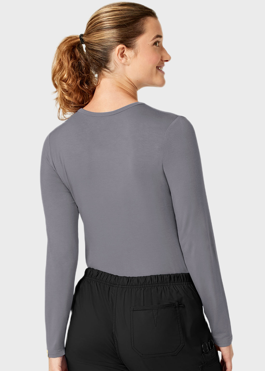 Monotonous scrub tops bother you? Looking for workwear that feels good and looks great? Here you go! WonderWink's round neck and long sleeve tee is the ultimate choice of medical professionals for a comfortable day at work.