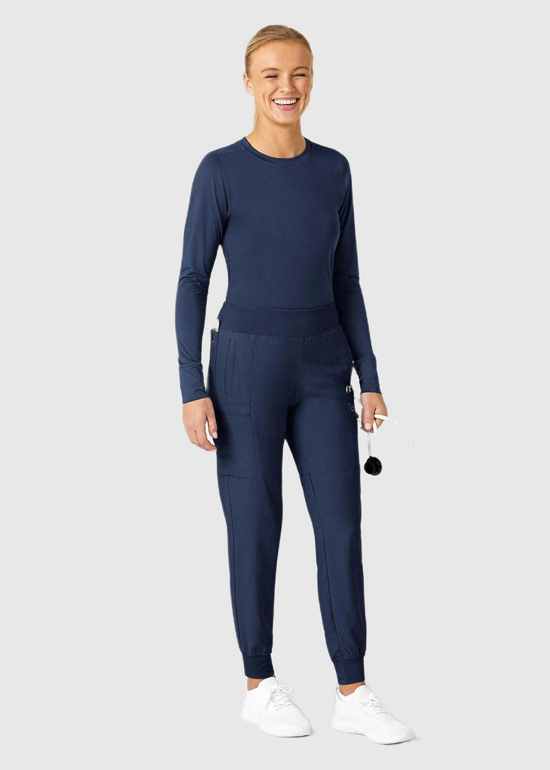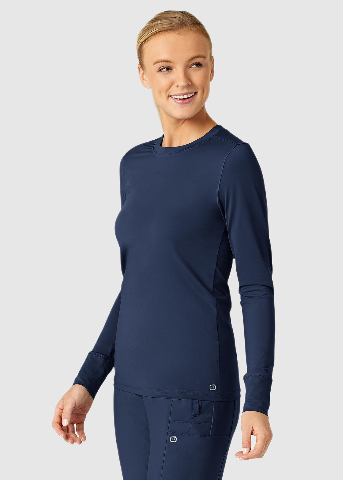 Be at ease all day long with Layers by Wink Scrubs Women's Performance Long Sleeve T-Shirt. Featuring a crew necklineA, long sleeves for coverage and center back neck reflective loop for headphone wires, the t-shirt is a must have.